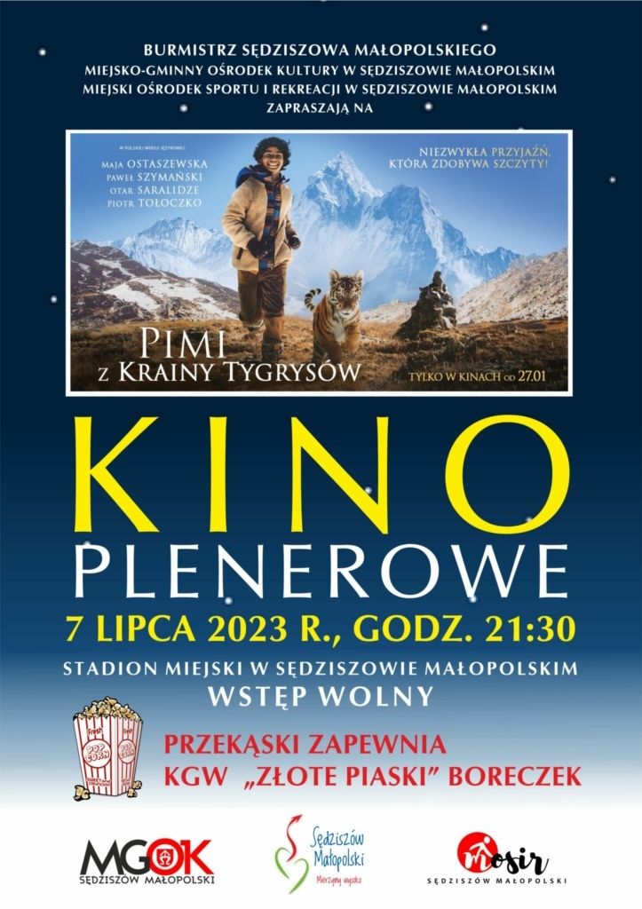 Już dziś (piątek) o godz. 21:30, na Stadionie Miejskim w Sędziszowie Młp. będzie wyświetlony film "PIMI Z KRAINY TYGRYSÓW". O przekąski podczas seansu zadba KGW Złote Piaski z Boreczku. Kolejny seans zaplanowany jest na piątek, 21 lipca.