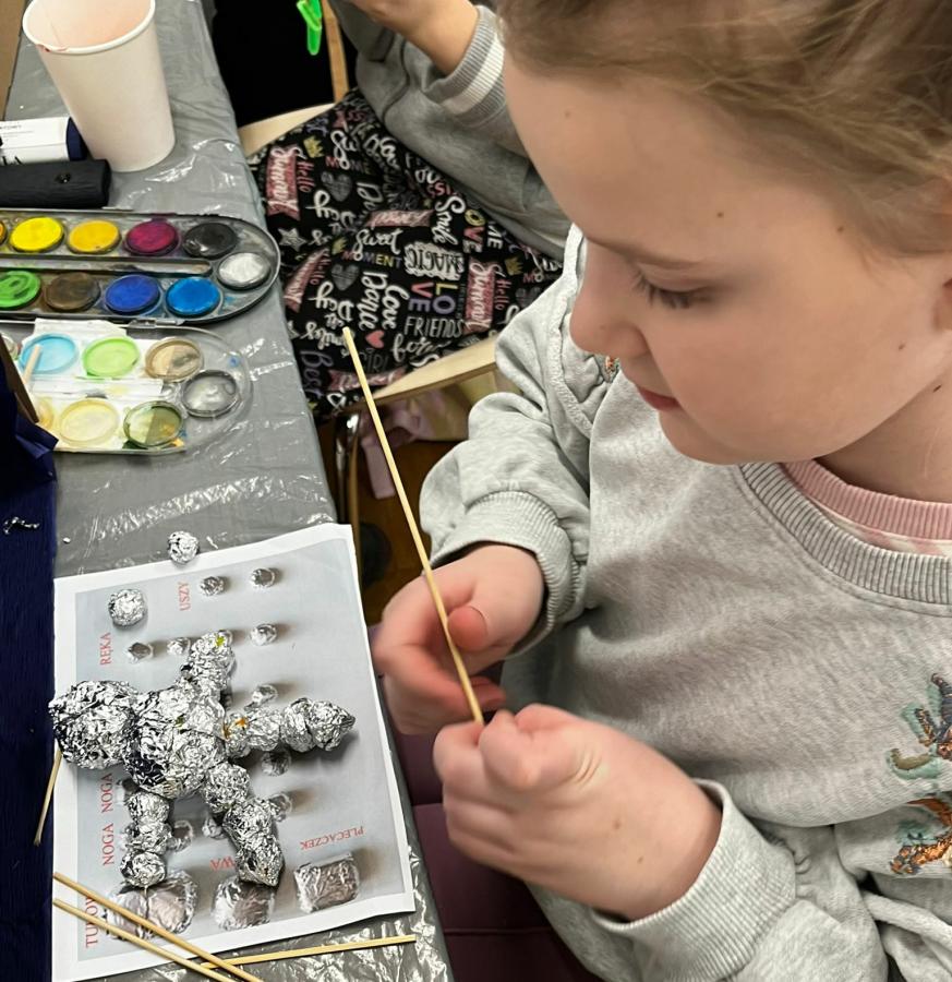 Na zajęciach w Kantorówce dzieci tworzyły makiety kosmosu, kosmiczne stworki czy astronautów.