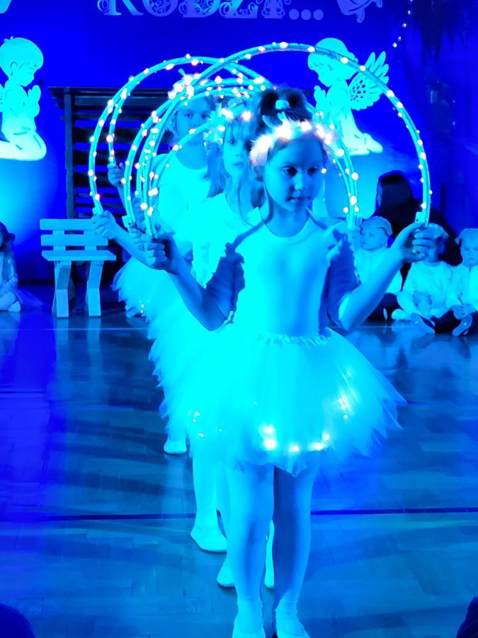 Układ taneczny z podświetlonymi obręcami zrobił wrażenie na publiczności.