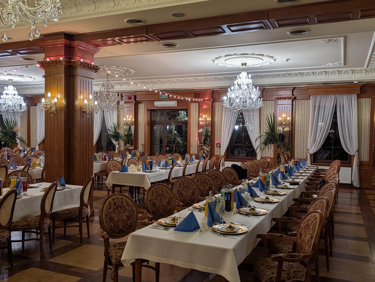 Nakrycia i stylowa sala hotelowa tuż przed przyjazdem uczestników balu