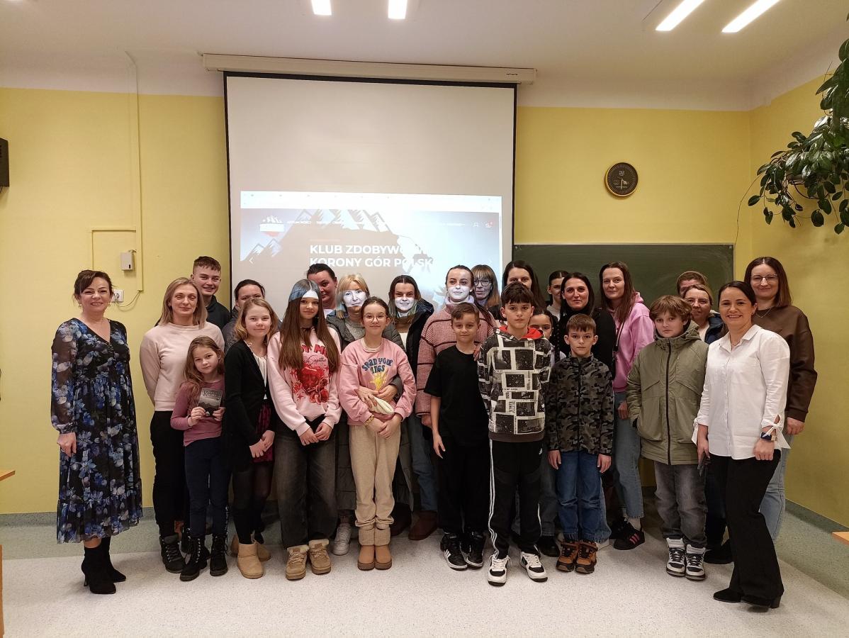 Uczniowie zainteresowani zdobywaniem polskich szczytów.