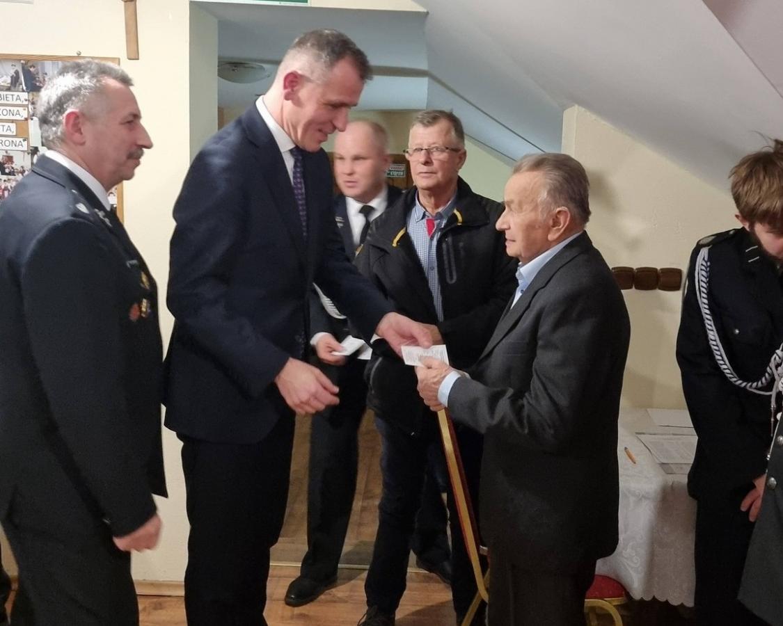 Galeria przedstawia Walne Zebranie Sprawozdawczo-Wyborcze OSP Zagorzyce Górne, które odbyło się w remizie w Szkodnej. Na zdjęciach: nowy zarząd z prezesem Stanisławem Charchutem, wręczenie pamiątkowej statuetki ustępującemu prezesowi Bolesławowi Pazdanowi, strażacy odznaczeni za wysługę lat (nawet 65 lat służby!).