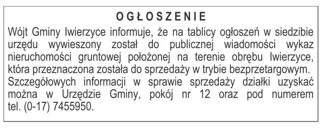 O G Ł O S Z E N I E Wójt Gminy Iwierzyce informuje