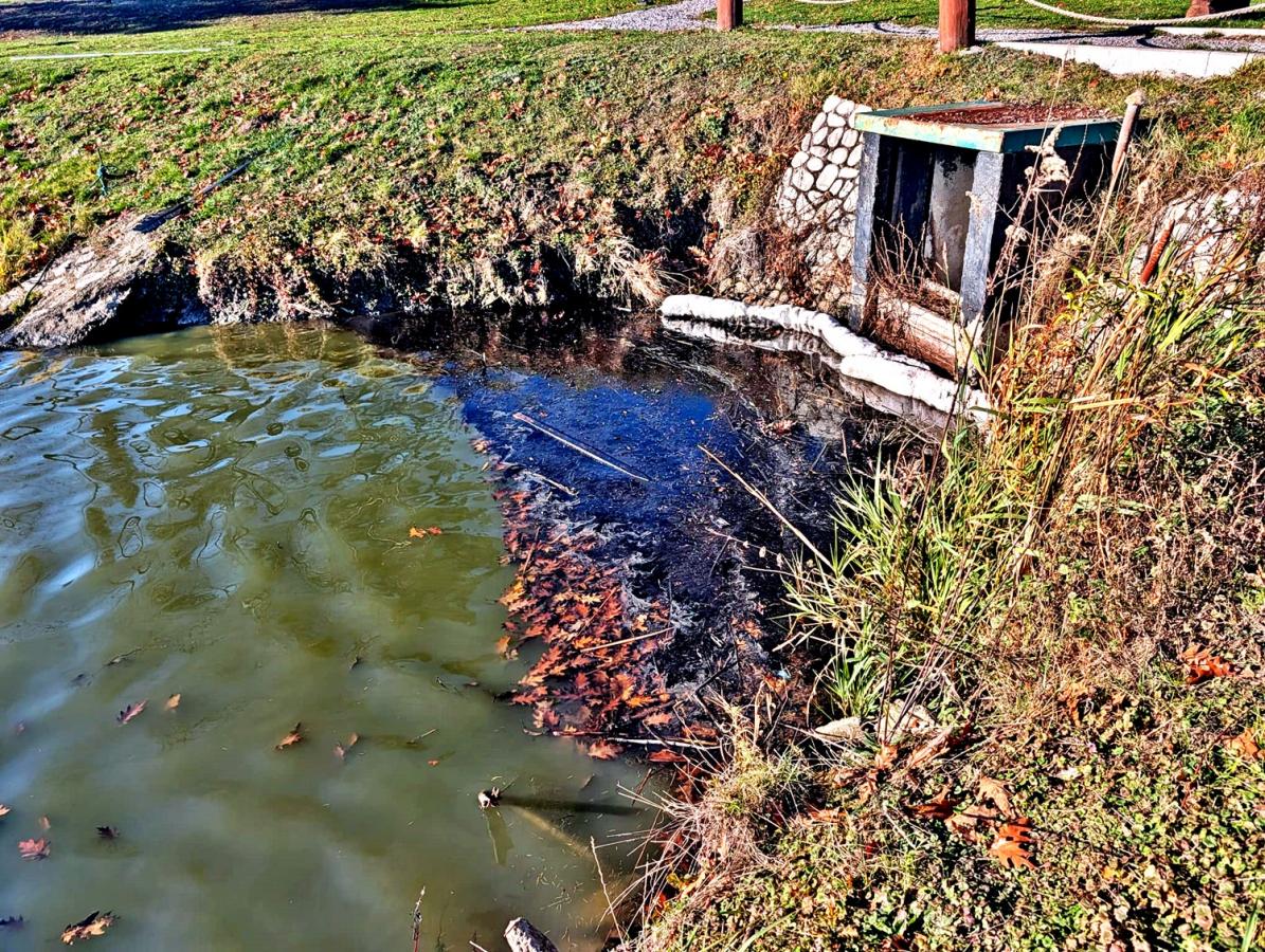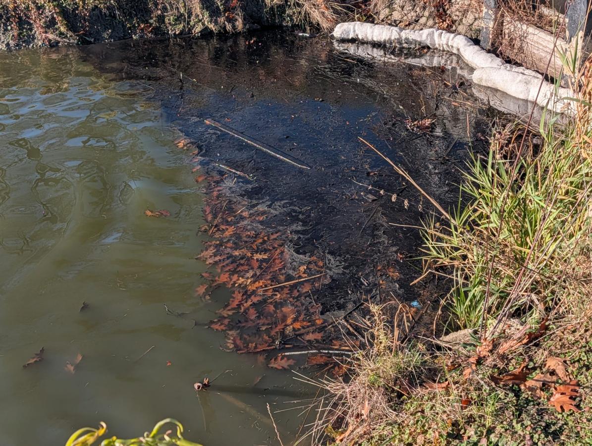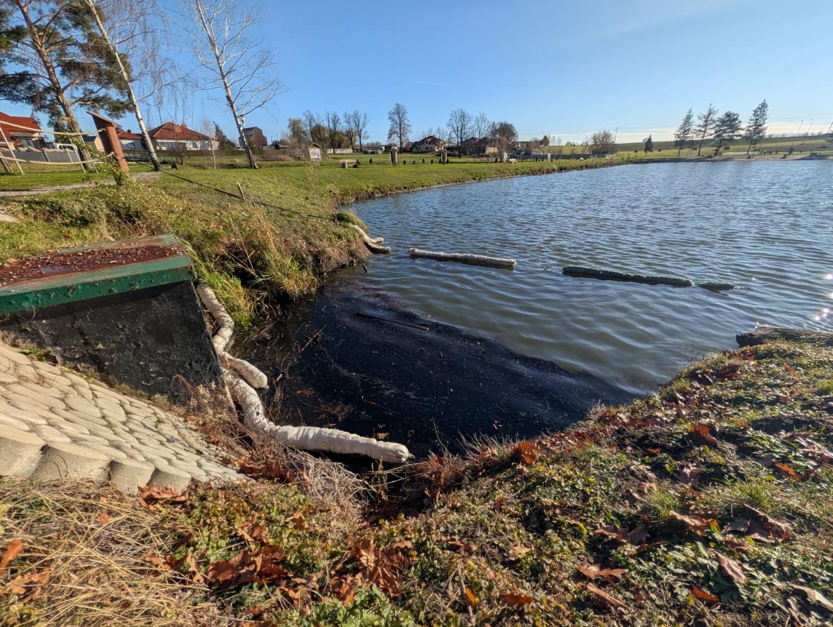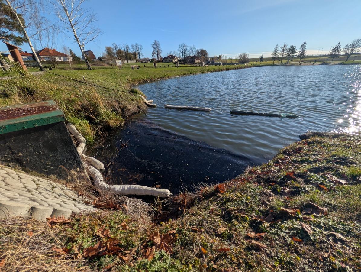 Zdjęcia Policja bada jak do stawu trafił olej - fotorelacja