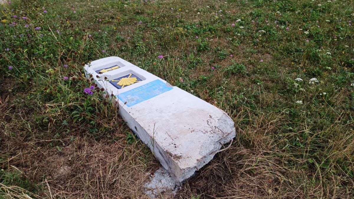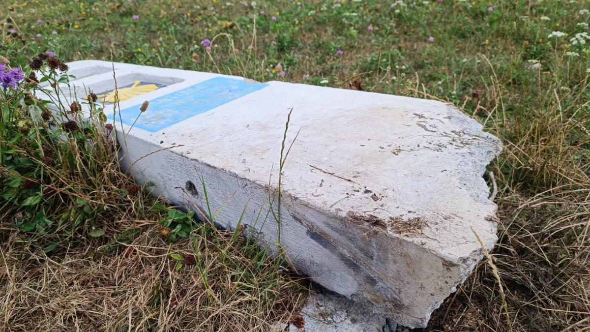 ZDJĘCIE: W. NAJA To był solidnie wykonany betonowy zbrojony znak, trzeba było dużej siły, by go złamać