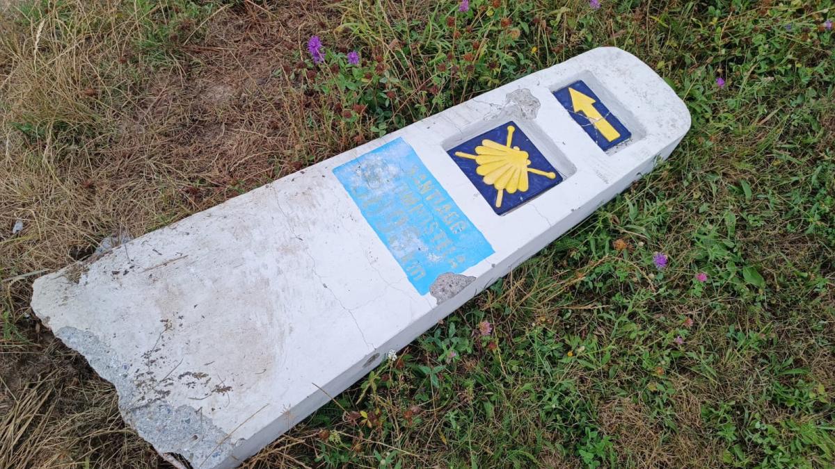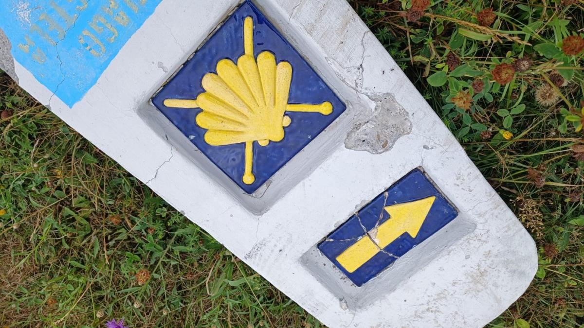 ZDJĘCIE: W. NAJA Muszla św. Jakubia, strzałka wskazująca kierunek na szlaku i odległość
