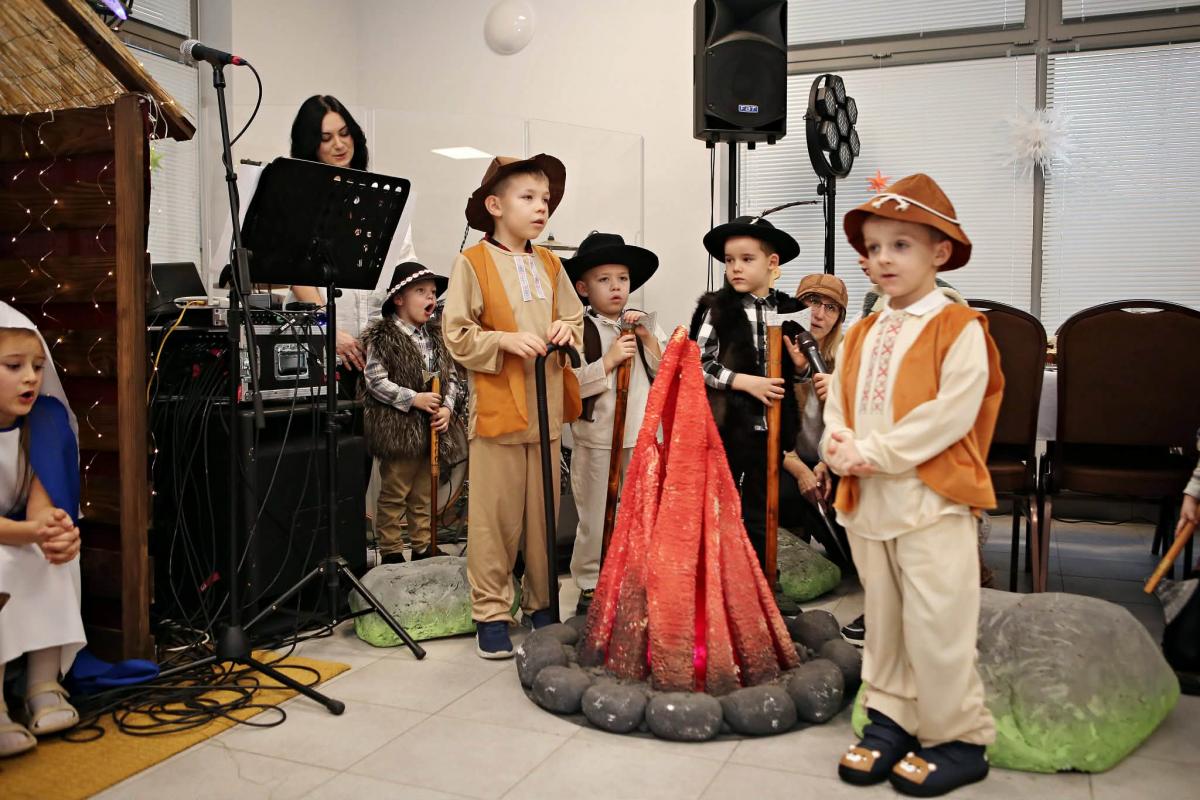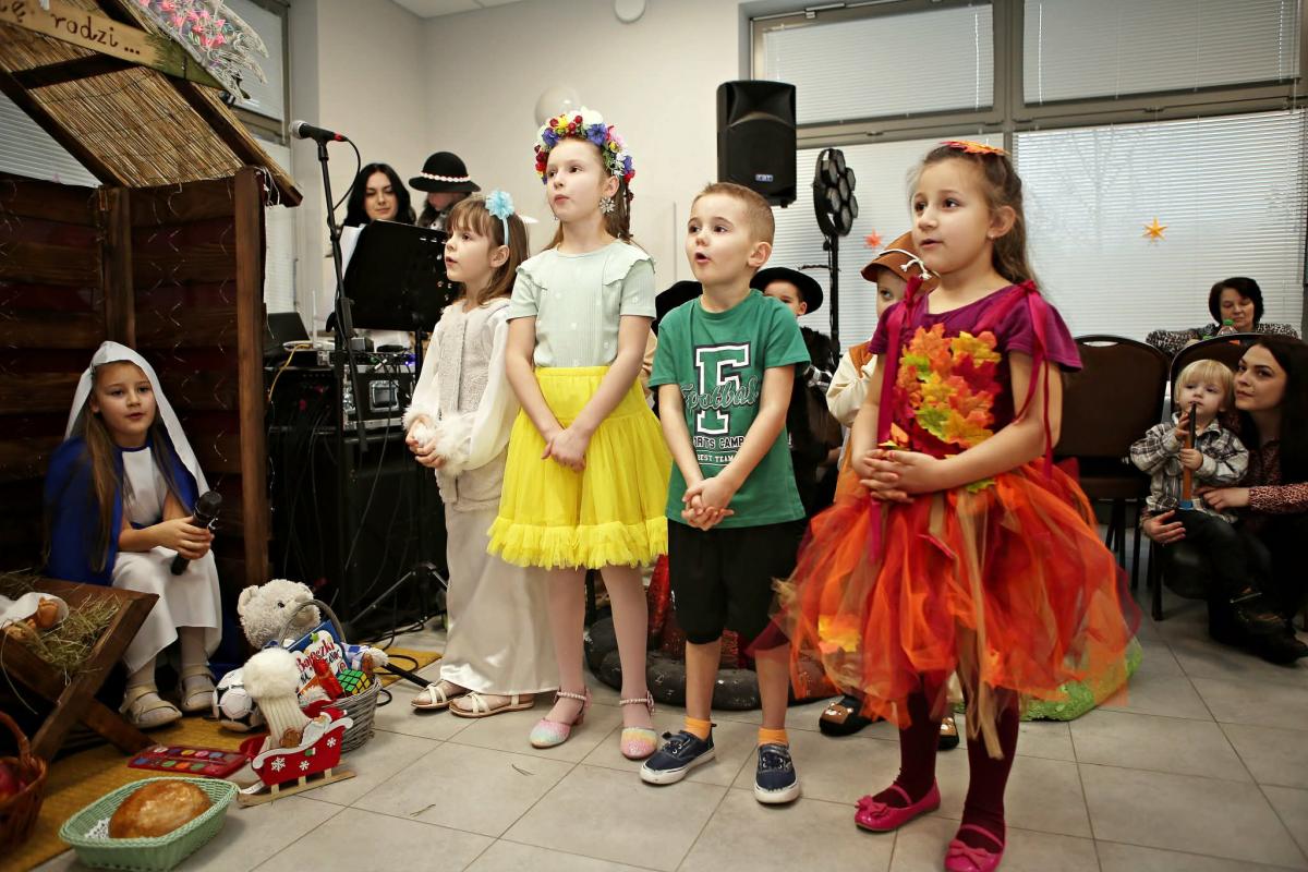 Dzieci, które przyszły do żłóbka i małego Jezusa, to była jedna ze scenek podczas jasełek.