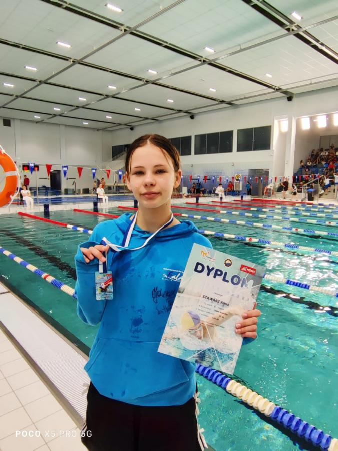 Anna Stawarz z dyplomem za 2. miejsce na dystansie 100m stylem dowolnym – sukces zawodniczki Fali Ropczyce w Mielcu.