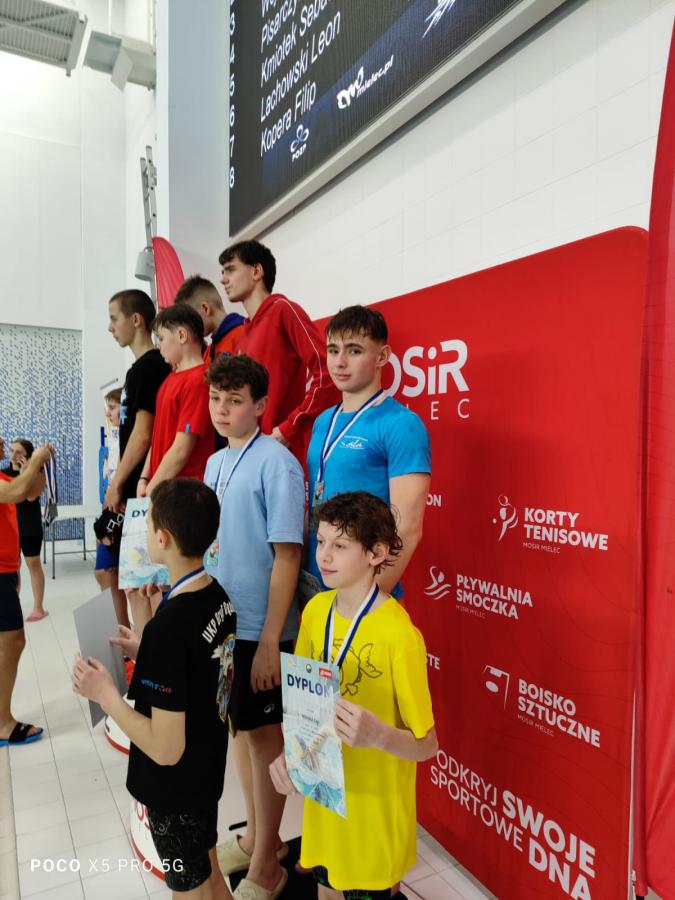 Reprezentacja chłopców klubu MUKP Fala Ropczyce z dyplomami i medalami po zakończeniu Zawodów o Puchar Prezydenta Miasta Mielca.