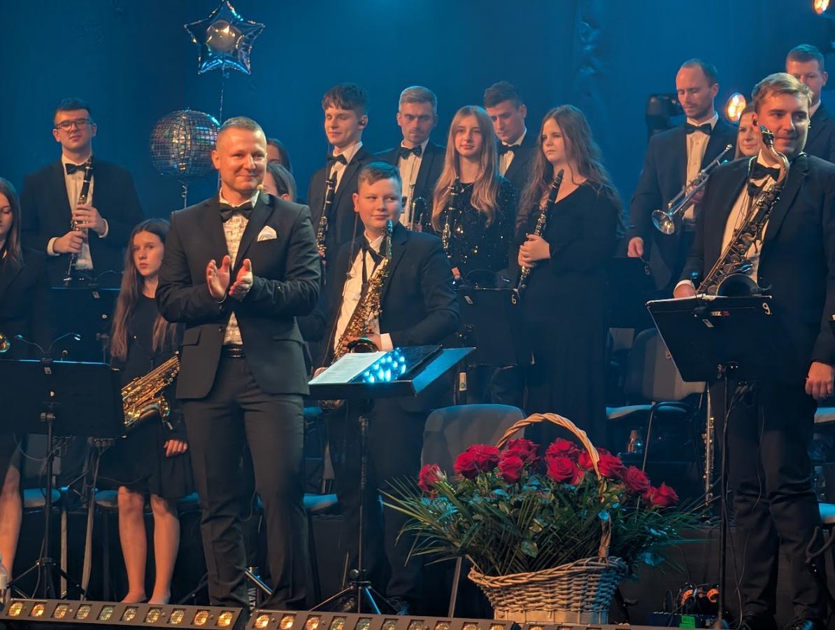 Dyrygent Dawid Fus i członkowie Miejskiej Orkiestry Dętej przyjmują owacje po Koncercie Noworocznym 2026