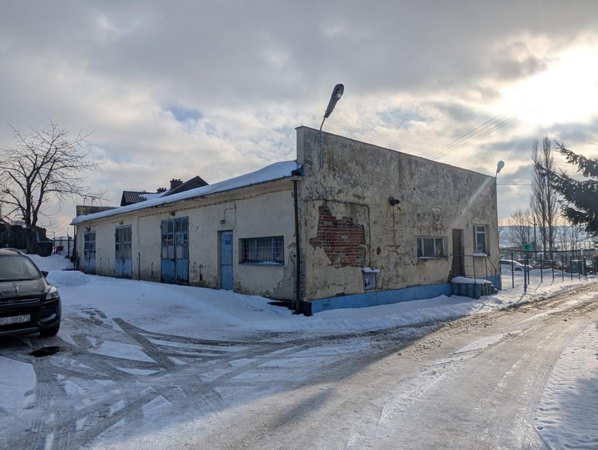 Tak budynek stojący na działce przeznaczonej pod wynajem wygląda od strony niewidocznej z ulicy Grunwaldzkiej. Są tu drzwi wiazdowe do stanowisk warsztatowych.