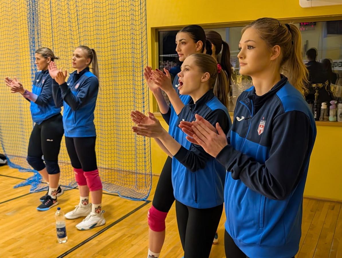 Rezerwowe KS MArba Sędziszów Małopolski dopingują koleżanki na parkiecie